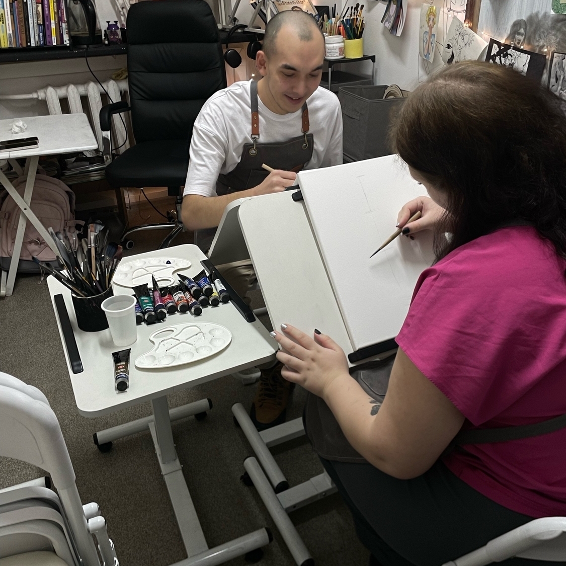 Все материалы предоставляются студией, опыт в рисовании не требуется. Продолжительность мероприятия: 2-2,5 часа.